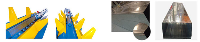 傳統的風管接合“三步曲”合而為一。傳統的風管接合需首先法蘭成型,然后再分別加工聯合角(東洋骨)的雌雄骨,然后再用錘子或合口機將聯合角(東洋骨)縫合,而本機風管咬合機將傳統的風管接合“三步驟”合而為一,將骨型制作,合縫一次性完成,而且可獲得縫合緊密的成型風管。