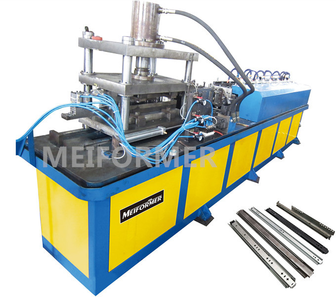 設備基本結構:一、自動進料成型沖孔切斷卸下機構。二、調直部份采用能:上、下、左、右調動保正滑軌質量標準,方便技術人員的調動。三、采用編程控制器(HLP或JDIA)控制。四、效益分折:6—16米/1分鐘,損耗少。